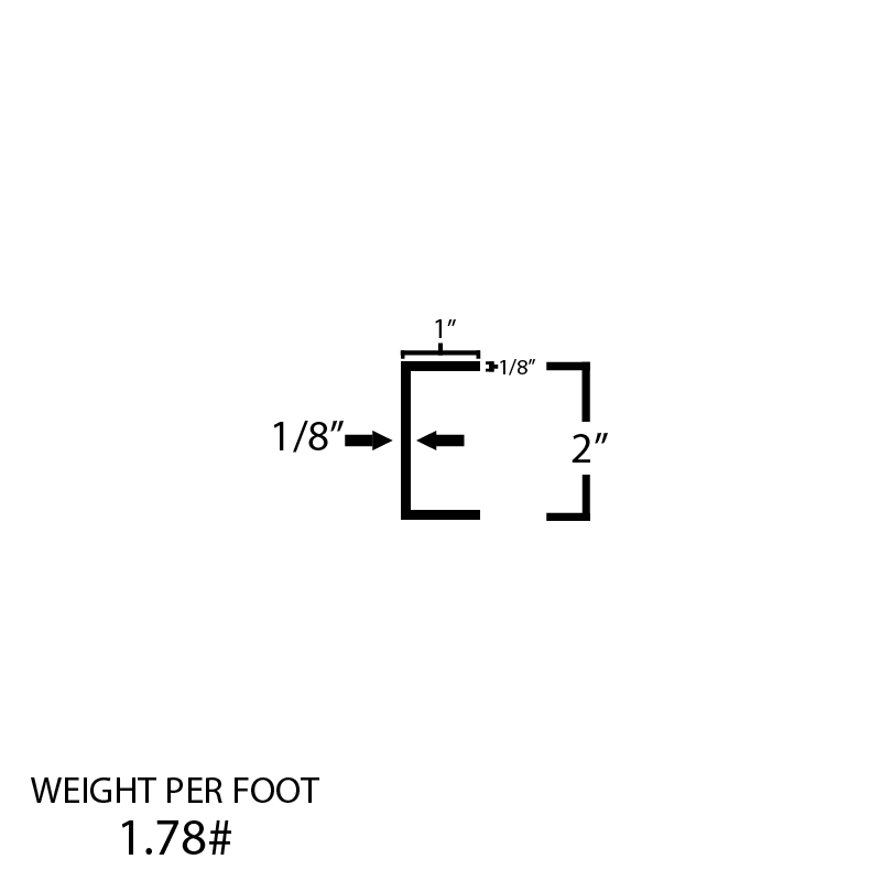 2'' x 1'' x 1/8'' x 1.78# x 20', Galvanized Steel A36/A123