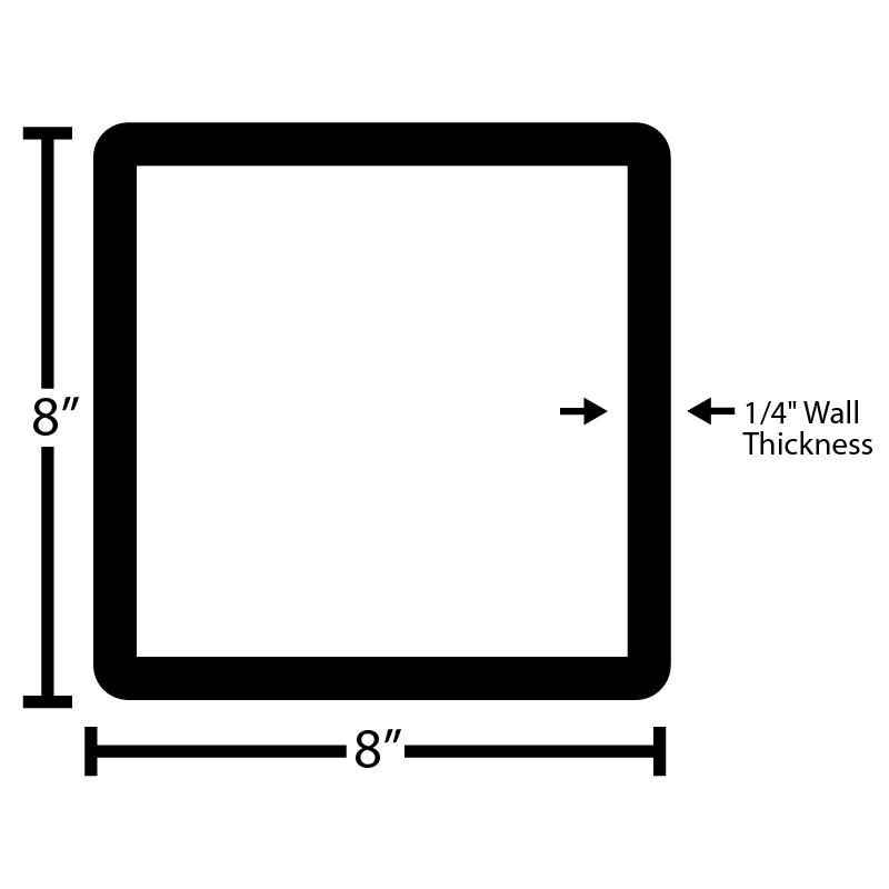 1/4'' Thick, 8" x 8" x 20', Galvanized Steel A500