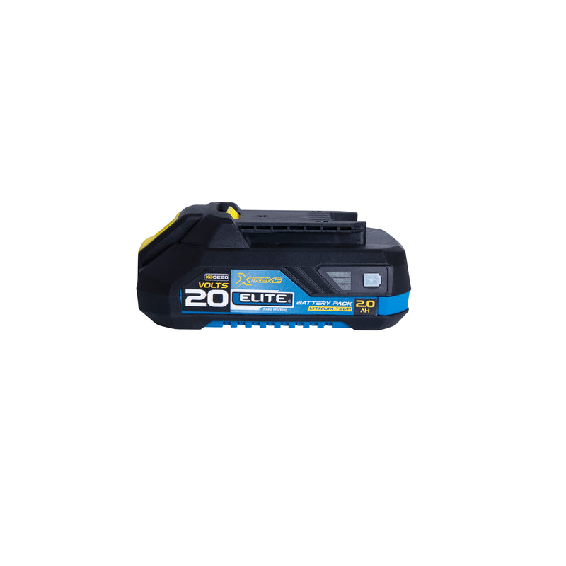 The professional Elite brand 20-volt battery has 2.0 Ah (amp hours).; It has overload protection.
