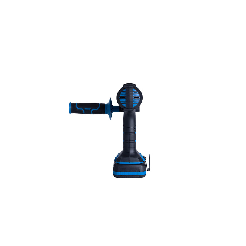 The 20-volt cordless hammer drill has a speed selection switch, making it a practical and functional piece of equipment. In addition, its auxiliary handle allows greater control of the tool.